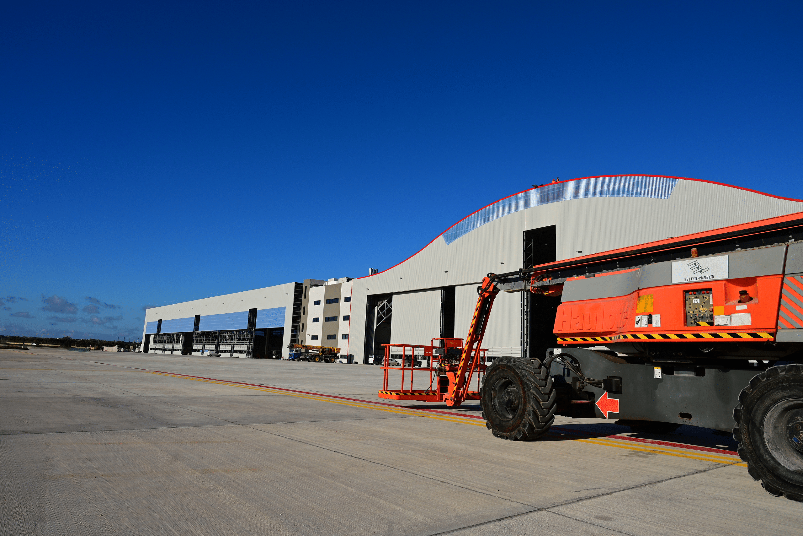 E&L Enterprises was entrusted with the structural steel fabrication and assembly for a six-bay aircraft maintenance hangar developed for SR Technics at Malta International Airport. The 40,000 m² facility was designed to accommodate six narrow-body aircraft simultaneously, supporting heavy maintenance operations, C-checks, and cabin modifications.