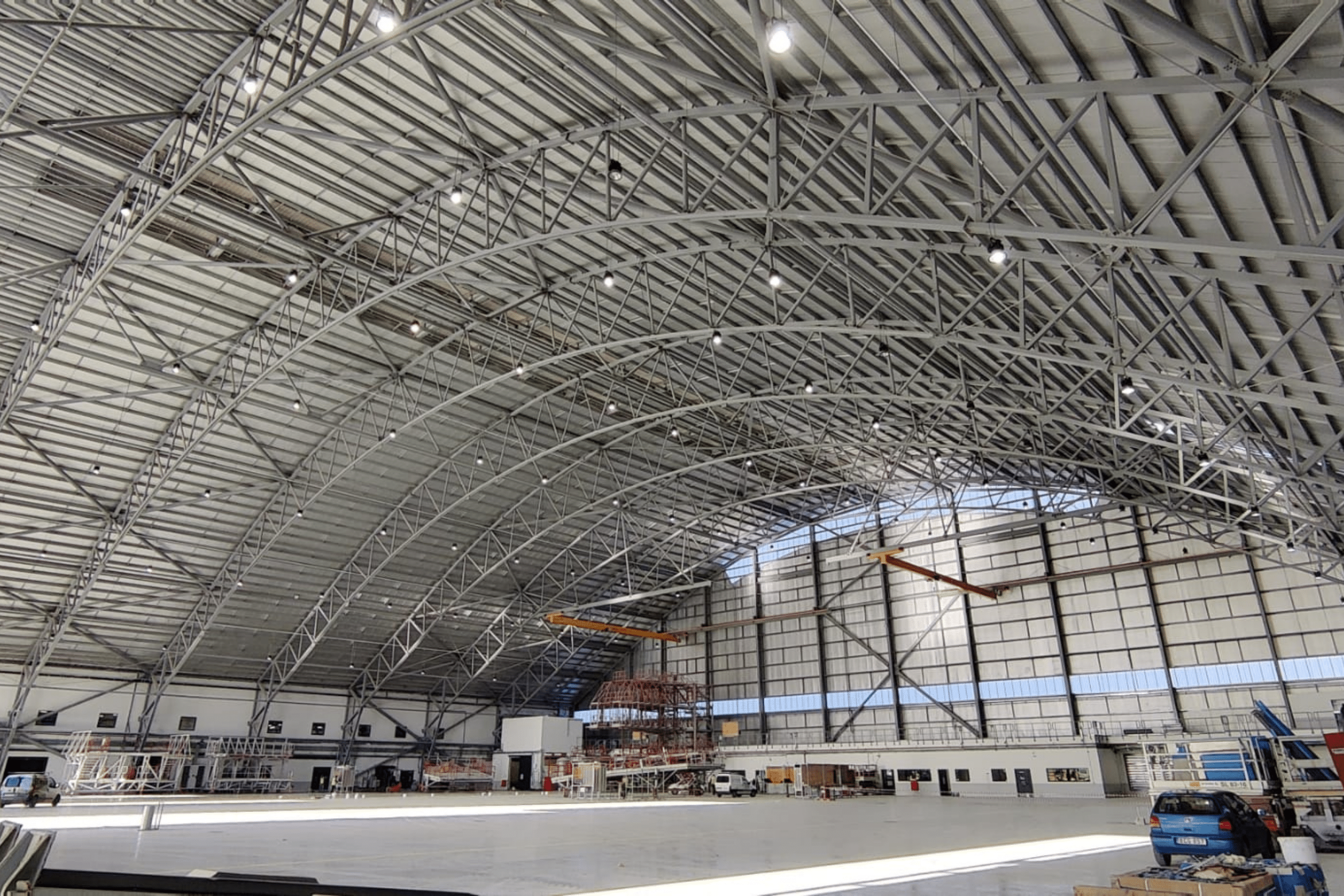 The hangar’s curved steel truss geometry demanded exceptional precision. CNC cutting and controlled pre-assembly ensured accurate alignment and efficient installation on site.